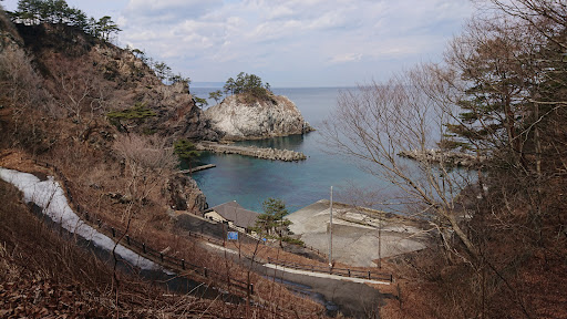 勾配がきつく対向車がきてほしくない坂道を下るとあります。途中のPマークで車を止めて歩いたほうが安心でしょう。 浜まで行くと透明度の高い三陸の海を間近に見ることができます。岩がくだけてできた小石の浜なので、打ち寄せる波の音が際立ちます。震災のせいと思われる壊れた船着場が切ないです。 断崖に掘られたトンネルが特徴を与えています。 みちのくトレイルのルートになっているおかげか、無料の無人休憩所が2棟もあり、新しい休憩所のほうは暖房便座のキレイ...