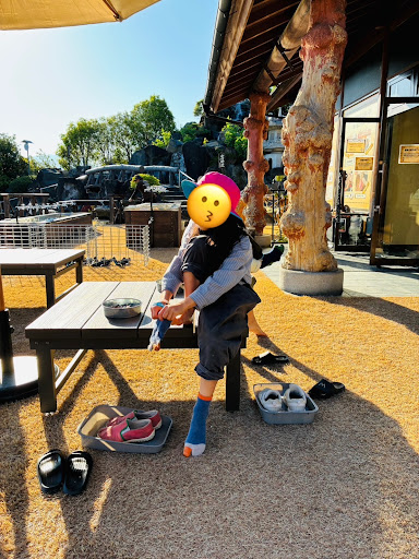 また、手洗い場が体験場所の近辺に無い(あったかもしれないが、わからなくてトイレで洗いました)のもマイナス。子供達は途中でスコップではなく素手で砂を触り始めました。多分ヨソのお子さんもそうなる可能性が高いかなと思います。
