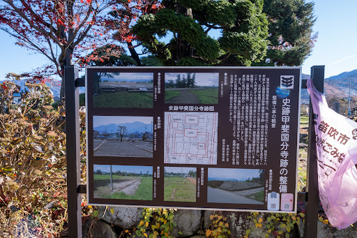 Read more国指定史跡の寺院跡 駐車場あります 奈良時代に天皇の詔により建立され鎌倉時代に焼失 その後、戦国時代に武田信玄により再建される 以後この地にあったものの昭和57年に旧国分寺跡の調査や現国分寺保存などの為に移転を計画 平成22年に現在の場所(約200メートル南側)に移転完了 現在は廃墟と言うか更地になっています 礎石が残されている他にブルーシートで覆われた場所なんかもあり、現在も保存や調査が進行中である事がうかがえます 当時の伽藍をイメージしながら何も無い跡地を歩くと何となく...