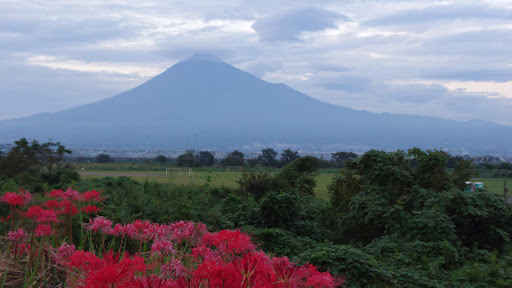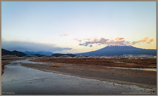 Read more富士川の西側の土手の上の道は、河川敷より一段高く、見晴らしは360度です♪ 冠雪した富士山の風景は絶景に値します♪ やはり、富士山の風景は北側よりも南西、ここからがバランスがとれて最高ですよね♪ たまたま上り東名高速の日本平パーキングに寄った時、富士山に傘雲が出ていたのが見えたので、わざわざ富士川の土手迄走って来たところ、お彼岸を過ぎたばかりの土手に、まだ彼岸花が咲いていました♪ 富士には◯◯の花が似合うと言った歌人は誰でした? そうです、太宰治です♪ 河口湖の北にある峠の天下茶屋に着いた太宰治は三ヶ月ほど泊まり、峠付近に咲いていた月...