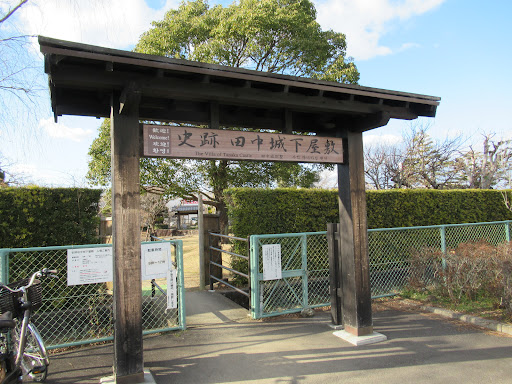 静岡と云ったら「磯自慢」、焼津市にあるその酒蔵が15時で閉まるので、遠回りだが先に磯自慢酒造とその親戚の酒屋に行って宅配の手配をしてから田中城跡へ来た。車は「田中城下屋敷」の駐車場へ停めた。田中城の史跡はこの下屋敷の公園内(入場無料)と街中に堀や土塁が残る程度である。街中は道が狭そうであったので、ここから歩いて田中城の痕跡を巡った。約1時間強掛ったが、冬だったのでそれほど疲れは感じなかった。 お勧め順路は、①田中城下屋敷から冠木門を出て目の前の六間川を渡り、②田中城土塁跡(Googleマップの表示名、以下同じ)、③田中城三日月堀跡(馬出曲輪)、④田中城本丸跡碑、⑤田中城二之門跡、⑥田中城二之堀、⑦田中城三日月堀跡(大手)、⑧田中城三之堀、⑨田中城三の丸土塁・家老屋敷跡、⑩平島一之門跡、⑪田中城三日月堀跡(平島)、⑫田中城三之堀・土塁跡で、ここから下屋敷へ戻る。
