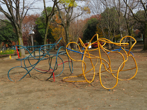 Read more市民に人気がある公園のようです。広さ(38,000㎡)をうまくデザインしていると感じられました。申請が必要ですが、野球・テニス・ゲートボールなども楽しむことができます。夏は、子供たちが水遊びできる親水施設があります。水による涼しさは大人にとっても爽やかさを与えてくれるはずです。丈夫に網込んでいる?ロープで作られたジャングルジムやターザンロープ、赤と青と黄色の3色できているのですが、曲線で組み立てられているユニークな遊具などがありました。製作者にとって、自己表現の場になっているのかな?と感じました。それらの遊具で、子供たちが楽しそうに遊んでいました。幼児が安心して遊べる、ブランコや滑り台が設置されている別の空間も作られていました。 植林したのは数十年前位でしょうか。大きく成長した樹木が数多くあり、公園内の散歩コースとして整備されていました。