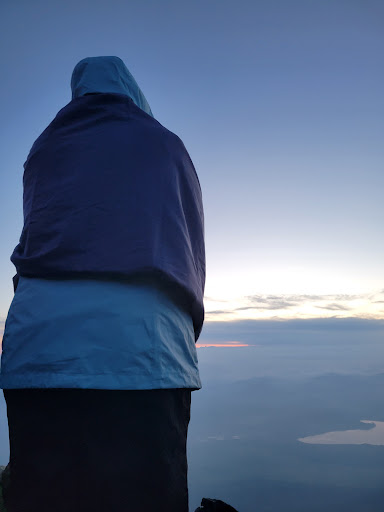 Beautiful shrine on Fuji's peak with plenty of benches and windbreaks for hikers. The shrine does not open until 0600, so if you arrive at 0400 to watch the sunset. be prepared to wait or skip the final stamp. it is extremely cold, even when it's hot in the city, and it's hard to carry extra clothes when it's blazing, but you will need winter clothes to survive. You should also bring something waterproof to sit on, as the benches are often wet.