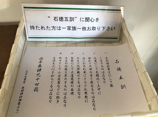 Al interior del parque esta el Santuario "Ishidoku Gokun", un Santuario a la piedra, en su interior un pequeño altar y como un poema a la piedra, un escrito antiguo en kanji con las 5 virtudes de la piedra.