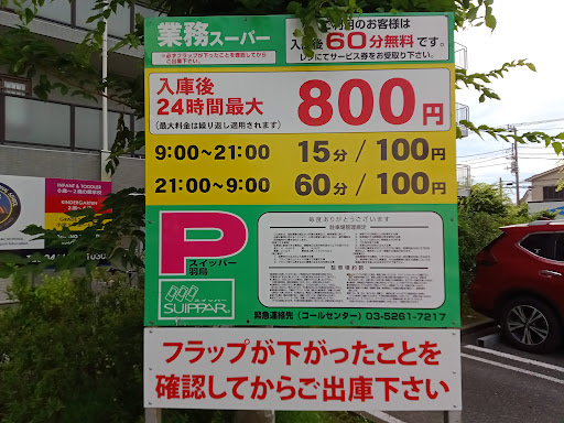 駐車場は店舗の規模から考えると少ない気がします。 また、私が利用した時には1機踏み板が上がっていた状態で空車でした。その為、センサが空車と判断したのか車が数台入り込んできて大変でした。 その為本来「★★★★☆」を考えていましたが「★★★☆☆」にしました。 駐車場の利用方法は駐車し店舗で買い物を楽しみます。 会計時に「駐車場をご利用ですか?」と聞かれましたので「はい」回答を、レシートと同時に(1時間分の)駐車場利用券が貰えます。 ※買い物の利用額1000円以上だったかな? 精算機にて「自分の駐車している駐車の番号」を入力し「確認」ボタンを押します。 (角度によっては赤い読み取り光が見づらいのですが、)右上のセンサ部に駐車場利用券のバーコードを読み込ませ「ありがとうございました」などが精算機から聞こえればOKです。