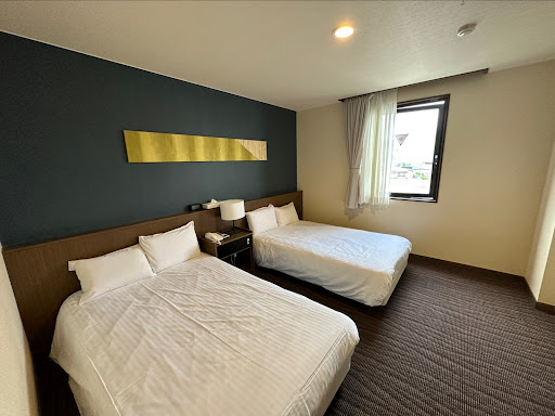 Read moreI lucked out and was given a larger bedroom than standard. It was a twin room with ample space between the beds and at the foot of the beds for my large suitcase. ||||The bed had a duvet with a cover which only covered one side which I didn't think was very hygienic (I realise it's a typical Japanese style) and one pillow filled with seeds and the other was a softer tempura style pillow. ||||The bathroom was small but functional. The towels were small and thin and only one was provided. There was mould on the shower curtain.||||The room lighting was ok and the air conditioning worked well. Unfortunately there were no English language channels on TV. There was one desk with a chair. A cupboard and good sized safe which wasn't fixed to the cupboard and a fridge. ||||Wi-Fi was poor and kept on dropping in and out. I tried changing rooms but there was no improvement. ||||The hotel offered free parking and it was just over the road from the train and bus station. I was able to catch a bus from there to Tokyo Haneda airport very easily. That said, booking it was a nightmare because the bus company wouldn't take internet bookings and the hotel refused to help me reserve a seat. ||||The breakfast was ok with enough western choices such as cereal, yoghurt and croissants. The restaurant was a nice bright room. ||||I used the hotel washing machine and dryers (for a small fee). They worked well although the machines were a bit dirty.||||No English was spoken at reception so communication was difficult.||||There were a few restaurants within walking distance (or if you drove with parking). 7 Elevens were about 10 minutes walk away. The hire car outlet was about 30...