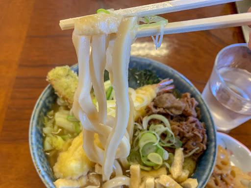 麺は期待どおり太くて硬い!ここまで硬いと潔く、文化として楽しめます 個人的にはたまに家で出てきても嬉しいかもです 讃岐うどんとはまた違い、小麦自体の味をスープと一緒に楽しむ感じです