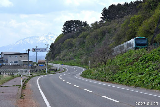Read moreここもライオン岩も、どうやったらそう見えるかの解説看板があって和む。 岩と海岸はさておき、ここから少しだけ南の場所からは岩木山が見える。運よく五能線も通った...