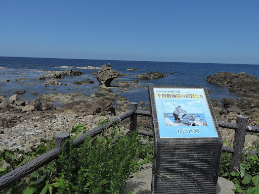 深浦町にある奇岩。 雪降るなかの1月中旬に訪問。かぶとだそうだが、説明の看板がない。 頭にかぶる兜?、カブト虫の形?どの角度から見ても、これだと当てはまるものがない感じ。 秋田のゴジラ岩のように、あっ、解る!っていう感じではない。 説明の看板を設置してくれる事を、...