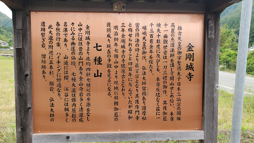 七種山を山号、十一面観音をご本尊とする高野山真言宗のお寺で新西国三十三ヶ所30番札所。 597年に聖徳太子の命を受けた高麗僧・恵灌が七種ノ滝近くに滋岡寺を創建したのち、七堂伽藍が整備され、633年には法道上人を導師に開山法要が行われたという。山号の七種山は、この地に住んでいた修行僧・滋岡川人が干魃の時、七つの種を人々に与え、飢餓から救ったということに由来している。732年に火災で焼失したが、聖武帝の命で再建され、その後、空海がこの寺で修行し、その時、真言宗に改宗、金剛城寺に寺名を改めた。1350年にも焼失し、このときは足利尊氏が再建したが、1474年に焼失したあとは寺勢が衰退した。1601年、台肪明覚上人は、寺名を作門寺に改め、姫路藩主・池田輝政の後ろ盾て復興された。明治初期の廃仏毀釈で寺地を没収され、現在地に移された。1897年に旧境内地の払い下げ訴訟を起こし、1902年に勝訴した。1928年には寺号を金剛城寺に戻し、現在に至っている。 23/11/21、福崎町を巡礼した際、お詣りした。 "ご朱印入用の方は鐘を撞いて…"という表示が出ていたので、鐘を撞いたところ、すぐ横で草抜きをされていたお母さんが返事をされ、少し驚いたが、天気のいい時には境内の草を抜いておられるそうだ。そのおかげで境内はとてもきれいだ。しばらくお話をしていると、園芸がお好きなようで、"草を触っていたら、怒ることがあらへん!"と言われ...