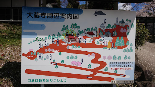 福島市の旧114号を通り小倉寺のセブンイレブン前の信号を山の方に登り、そのまま行くと 新114号につきあたる手前に大蔵寺の看板が出ているので、看板の示す道を通ると迷わずに着けると思います。 大蔵寺は地元では小倉寺千手観音と呼ぶ人が多いです。 駐車場は20台くらい停めれました。 駐車場の前は山の丘の広場になっておりベンチに座り寛ぐ事が出来ます。 桜の季節には辺り一面、桜が満開になりとても綺麗になります。大蔵寺の敷地内には千手観音が保管されている場所や八幡神社とかもあります。中を散策すると、30分くらいはあちこち見ながら参拝する事が出来ます。 春には花や桜を見ながら夏には蝉の音を聴きながら秋には紅葉を楽しむ事が出来ます。基本拝観は無料ですので自由に拝観出来ます。 千手観音を見たい時は拝観料を払えば見る事が出来ます。しかし春には大蔵寺のお祭りがありその時は千手観音が御開帳になるので無料で拝観する事が出来ます。千手観音の保管されている場所は平安時代に掘られたであろう木彫りの、観音像がいくつかありますので 歴史が好きな人は見に行...