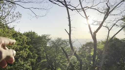 神辺駅で降りて少し歩きます。 登り口は結構遠いのですが、途中の神社からも登れそうな感じがしたので、神社に寄ってみると登り口がありました。 結構な山道ですが、しっかり整備されていて階段もあり、普通の靴で登れます。 少し登れば開けた場所に出ました。 ここからの景色もかなり良いですね。