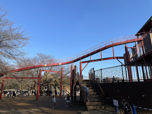 長い滑り台以外にも小さな滑り台やロープ登りなど多様な複合遊具なので、それだけでも面白いです。雨の翌日などは近くはドロドロなので滑り台滑るとズボンが結構汚れます。