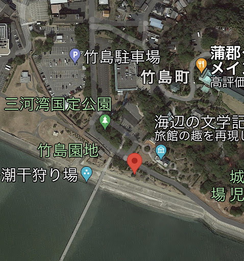 attractions: Takeshima Garden, Seaside Literary Memorial Museum, Gamagori City Takeshima Aquarium, Takeshima Fantasy Museum, Takeshima, Yaotomi Shrine, Suijin Coast, restaurants: 蒲郡クラシックホテル アゼリア, Rokkakudo, 蒲郡クラシックホテル メインダイニングルーム, Rivage, Daitoen Gamagori, 茶屋 ITSUKA, Yamaroku, ガスト 蒲郡店, 創作四川料理 Renpay (リンペイ), Cats Cafe Gamagori, local businesses: Takeshima Bridge, Take Island, Hachidairyu Shrine, Mikawao Island