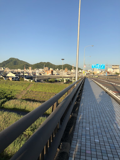 Read more岐阜市内にかかる奇妙な橋のひとつ。 岐阜市では、比較的新しくできた橋で、市内側がループになっている。 同様にこの橋から、ふたつ上流の金華橋は、南に渡ったところが丁の字になっている。 何方の橋も市内側は、真っ直ぐ抜けていないのだ。 この様な構造の橋は、全国的にみても珍しい。