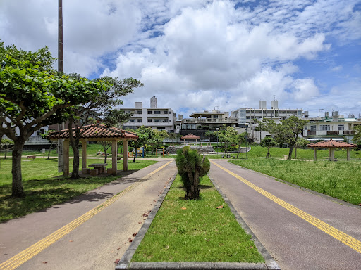 Wow coming here for the first time and what can say about this great place. First off my family and I had lunch at one of the many table Pavilions. Looking around many people were walking and jogging around the park. We were treated with someone playing some Okinawan shamisay (okinawan guitar). With our stomachs full and our ears treated to the culture of Okinawa in the air we wanted to explore the park further. For children there are many playgrounds for them to play in and for older kids there are fields to run, a skateboard park, and a basketball court. My family and I will definitely come back here. I'd totally recommend it here for some outside...