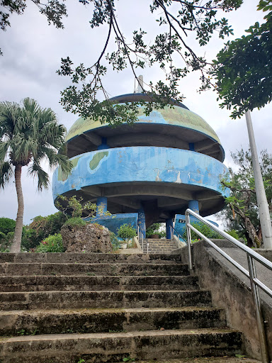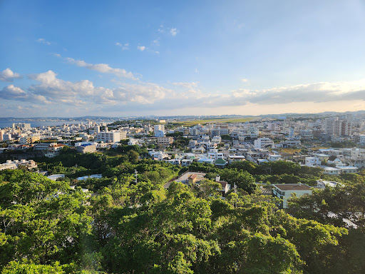 陣地壕は琉球石灰岩を掘り進め「コの字」型に構築された。坑内には支保工がはめられていた溝も確認できる。嘉数高地には同様の陣地壕群が無数に構築されたが、現存する坑道陣地はここしかない。( 頂上の展望台え行く階段の途中で左側に豪の入口は今も現存している。) 坑内には支保工がはめられていた溝も確認できる。⽶軍が⾼地の北側から攻めてくる事を想定していたので、陣地壕の出入口は全てを南向きで、前田高地方面に向けている。