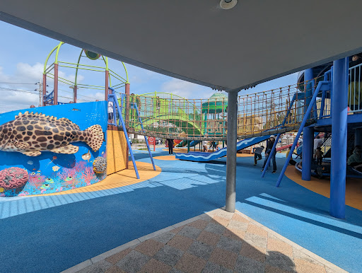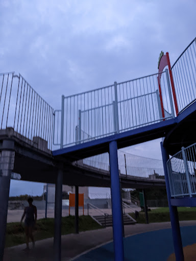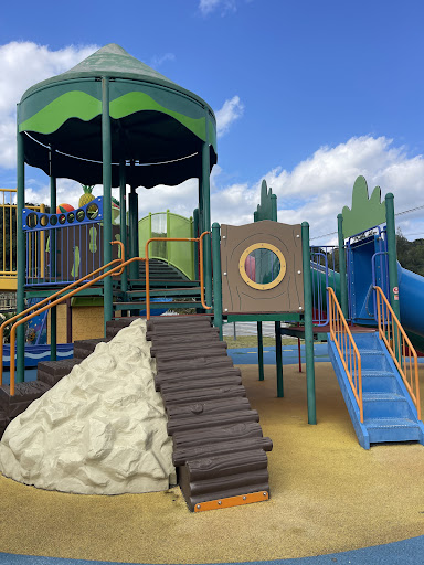 The playground is connected to the cafe area. There is a toilet near the park, and one located in the cafe. The park is close to the concert arena.