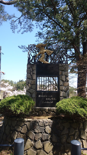 昭和40年5月3日建立。芦野公園に不死鳥は太宰治の生まれ変わりを意味し、中央の鉄格子には狭い険しい一つ一つの門があるということを表現。太宰治の好きなヴェールレーヌの詩を引用→撰ばれてあることの恍...