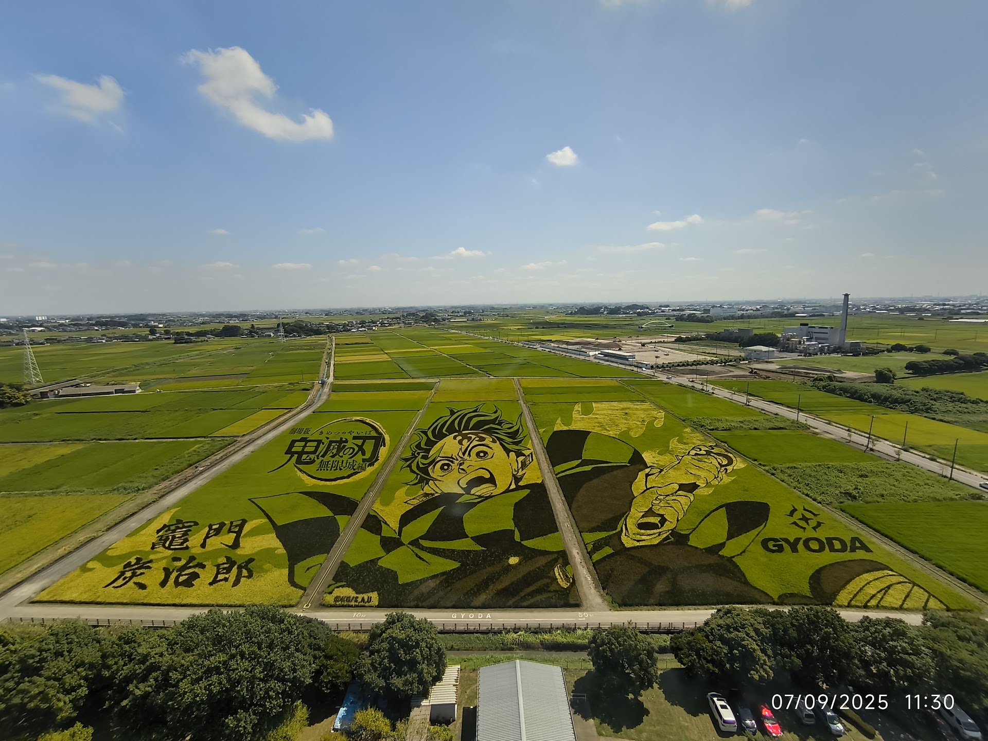 We went to the tower. Cost was 400 yen/person. The rice paddy art 2021 was beyond amazing. It symbolizes the great wave art and kabuki (Japanese dance drama).