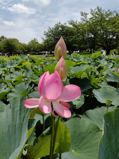 The park is most famous for its ancient lotus which are a variation that was believed to be extinct until there discovery a few years ago. In recent years it is also famous for its Guinness Record holding "tanbo art" (rice field art) that you can see from August to September annually. The rice field art can be viewed from the tower in the park.