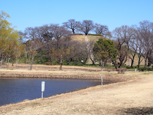 1590年の豊臣秀吉と小田原北条氏の戦い(小田原の役)で忍城を水攻めにした石田三成が、水攻めの進行具合を確認するために「丸墓山古墳」の頂上に本陣を築いたとされています。また、駐車場側から「丸墓山古墳」へ至る道は周囲より少し高くなっていますが、これは石田三成が水攻めで築いた「石田堤」の一部だそうです。