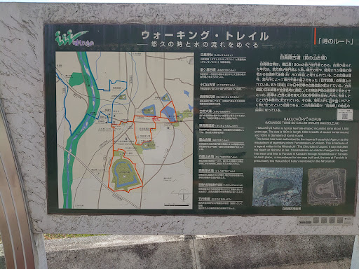 Known as the Swan's Mausoleum, this Kofun has been designated as a tomb for the semi-legendary Prince Yamato Takeru. Upon his death in Mie Prefecture, he is said to have turned into a swan and landed at this spot before flying on towards Otori Taisha in nearby Sakai City.