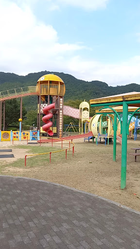 萩祭(8/3)の帰りに何処か遊べるところはないかな⁉と探して、見つけたのがここ❗ 3才、5才の孫を連れて初めて来ました。 場所は少し山手に入った処ですが標識があるので初めての人でも分かりやすいですね❗沢山の野菜に見立てた遊具があって喜んで遊んでいました🎵 (ただ暑かったので、滑り台を滑った時、お尻に火傷を😢) 遊具の他に屋根つきの休憩場所があったので 日陰で涼みながら孫の楽しそうな姿を見ながら来てよかったな✨と思いました。 近くには体育館⁉らしい建物と野球場がありまし...