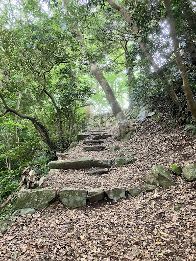当時の用水用の池やノミ跡の残る石切場などが残され、萩城の観光に外せないスポットだと思いますが、登山道は荒れていてあまり手入れされていないようです。落葉の積もった坂道は滑りやすく、階段も急で要注意です。😅