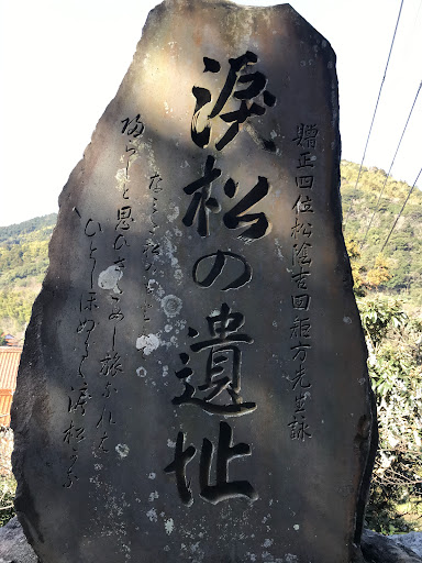 萩市椿大屋の〔萩往還〕、〔涙松の碑〕近く(北側)の小公園に芭蕉句碑がある。 はるもやゝけしきとゝのふ月と梅 この句碑の所在地が分からず、萩市図書館で調べてもらった(感謝)。 〔涙松〕は、吉田松陰が江戸へ護送されるとき、最後に萩の町が見えるこの場所で、 かえらじと思いさだめし旅なれば一入(ひとしお)ぬるゝ涙松かな と詠んで涙を流したと言われる場所。碑が建っている。碑面には、 涙松の遺址 なみだ松のもとにて かえらじと思いさだめし旅なればひとしほぬるゝ涙松かな と刻まれている。 令和2年10月に再訪、芭蕉の句碑は草...