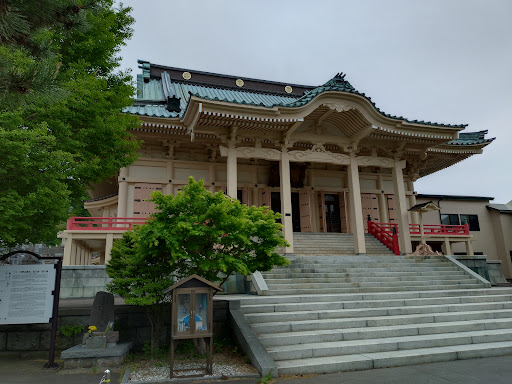 Read more函館市船見町にある浄土宗のお寺。函館山七福神の毘沙門天が祀られています。 箱館戦争の頃には新選組の屯所が置かれていた縁で境内には土方歳三をはじめ四名の隊士の供養碑が建てられていてその隣に新選組ファンのためのメッセージノートも置かれています。境内には他に高田屋嘉兵衛の一族のお墓や函館空襲の戦没者慰霊碑もあります。 お盆の忙しい時期だったので御朱印を頂くことはできませんでしたが宝物室は見学出来るとのことで見に行きました。2階にある宝物室には様々な文化財が収蔵展示されていて四天王像の1番左側の像が函館山七福神の毘沙門天様です。御賽銭箱も置いてあります。他にも南北朝時代に建てられたという北海道で最古の和人が定住した史跡である貞治の...
