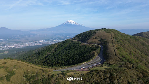 This view captures an absolutely stunning and serene landscape, showcasing the natural beauty of Japan with the iconic Mount Fuji in the background. The contrast of the snow-capped peak against the lush greenery of the rolling hills and winding roads below creates a scene that feels both peaceful and majestic. The elevation gives a sense of openness, while the greenery and the road below hint at exploration and adventure. This is the kind of place that seems perfect for a tranquil escape, where one could soak in the beauty of nature and perhaps find some quiet moments of reflection. It’s truly a spot that inspires awe and invites one to pause and take in the...