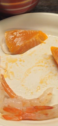 And the scariest was the salmon sashimi.... so orange... well... it bled orange all over the plate.. ill let you be the...