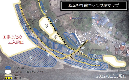 このグーグルマップの口コミを頼りに行ってきたのですが、初めてで、勝手がわからず、すでに設営完了して落ち着いちゃってる方に聞いて、聞いてもピンとこなかったのですが、とにかくどっかそのへんどこでもいい、みたいな感じで、空きが多い、駐車場のところでテントを張ることにしました。