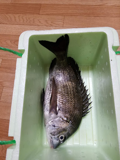 Had a great time fishing at the park here, we caught several small puffer fish and my girlfriend caught a beautiful kurodai while fishing for the first time in her life.
