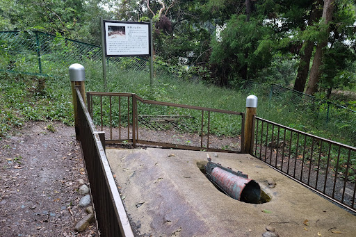 時期的に草木の成長は早いので何とも言えませんが整備とかされてない様子。出土場所の上5メートル程に謎の施設。門も閉鎖されてしばらくたっているよう。コチラも廃墟化。更になぜか周辺は獣臭で満ちていた。近くに動物園でもあるのかな?と思うくらいでした。