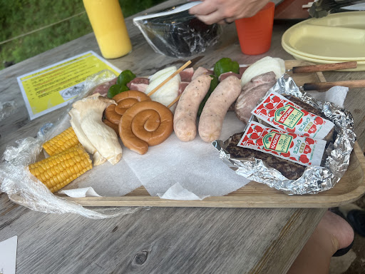 We stayed for glamping and the dinosaur animatromics were very close by so we had an amusing welcome committee. The included empty hand BBQ was really convenient-- simply set the desired timing and they start the grill and then bring drinks and foods. The meat set was quite nice. One of us has an allergy to seafood so they kindly substituted, but shrimp are in the normal set. A nearby restaurant drink bar is available to those staying overnight which helped keep us cool.