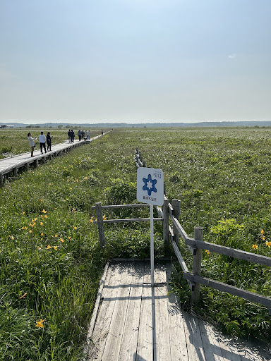永遠に続くかに思えるこの木道 それにしても美しい湿原です