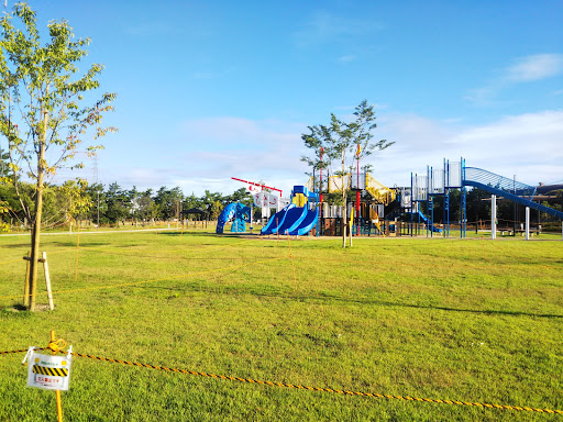 Read more4月1日に改修工事が完了して遊具が新しくなってました。 駐車場も完備です。 ただし公園内への自転車の乗入れは禁止されているので自転車の練習には向きません。 遊具としては大きめのアスレチックと幼児用のアスレチックと二種類あります。 改修されたばかりなので芝生育成中のためロープがあちらこちら張り巡らされてます。 また新たにBBQコーナーがあり、屋根の無いところは1500円、屋根ありは2000円とのことです。 トイレも真新しくとても綺麗です。 自動販売機がないので飲み物は事前に用意しておいた方がいいかと思います。 公園の東隣には野球のグランドがあり明石市で、播磨町との境界線の看板があります。 南側はすぐ海があり釣りをしている人もよく見かけます。 ですが景色としては人工島があり三...