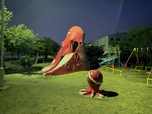 駐車場がある公園。 臨海公園で釣り目的が多いのだろう。 子供向けの遊具エリアは狭く、一部のみ。 ただ遊具のタコすべり台が人気で子連れも訪れる。大きなジャングルジムは老朽化で使えなくなっていた。ブランコは幼児向けと子供向けの2種があるが、子供向けも幅は大人に...