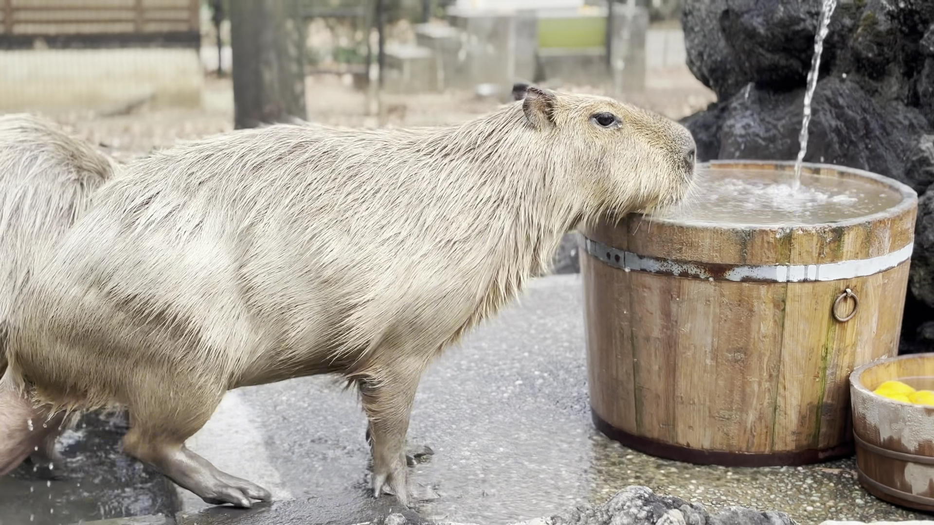 Part of the Saitama Children's zoo. No additional cost to view the capybara. This is where the capybara hot spring is annually. If you want to have a foot spa while watching the capybara in the hotspring, it costs a small additional fee. The onsen is from 2 pm to 4 pm and the foot spa is from 2.30 to 3.30 pm, but only the first 12 people can avail of it. There is more information on the Saitama With Kids blog.