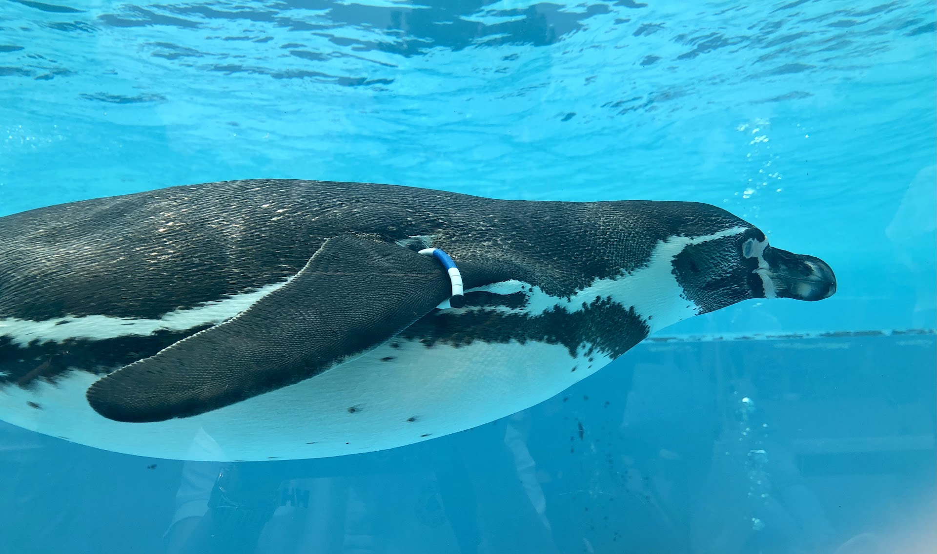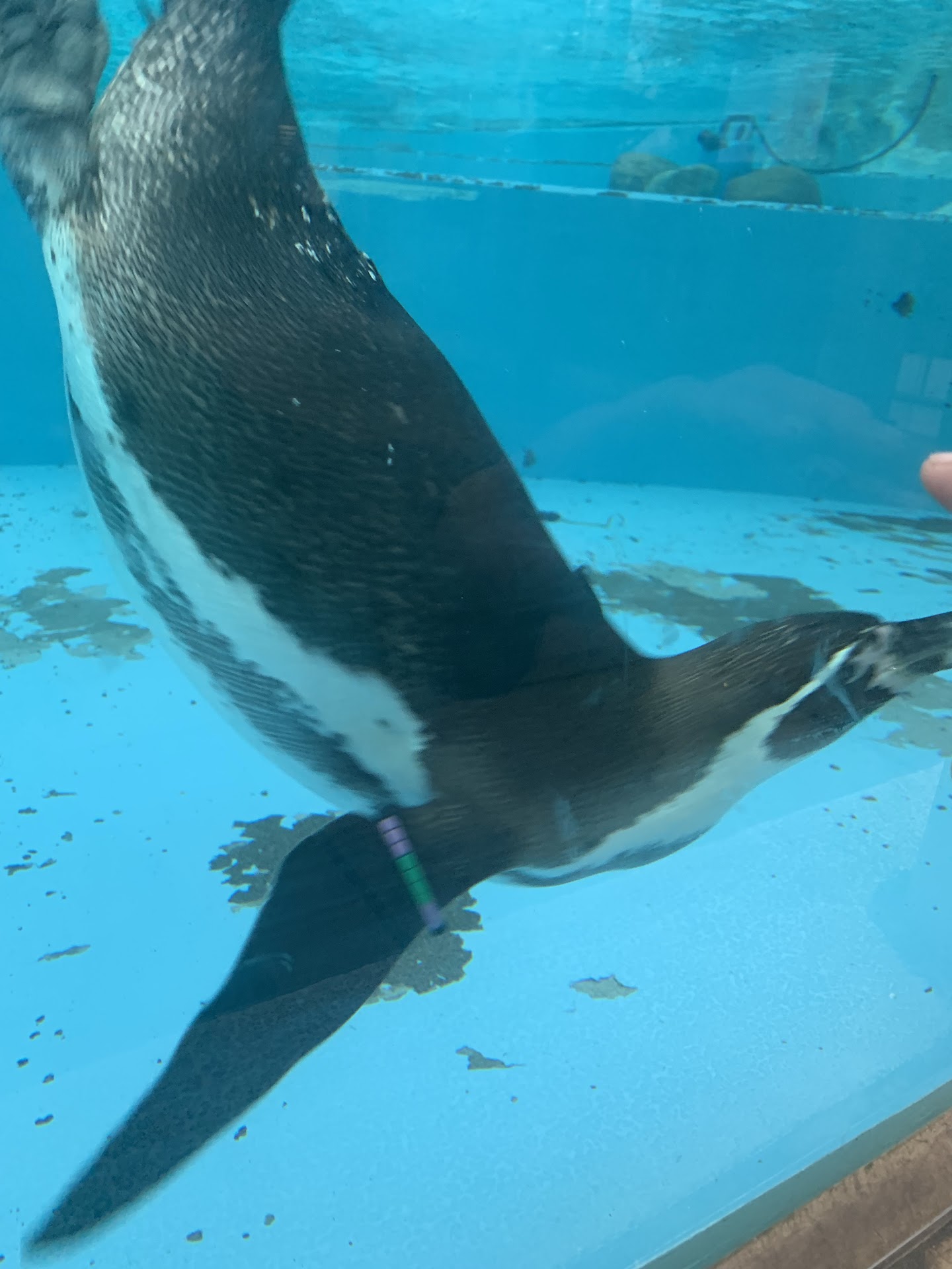まずは大きなプールで元気に泳ぐペンギン達を観察。