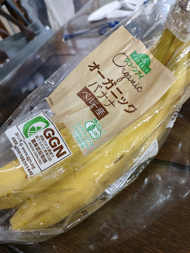 1.イオン地下 徒歩1分ぐらい離れているので時間的に余裕のある時や他店舗が閉店した後の夜遅くに 見るべきは イオン布施店。 ここが最も リーズナブルな価格で 種類も多いです。 特にありがたいのがバナナ、アボカド。それぞれ オーガニックだと とても高いものでした。 特にアボカドは 例えば 大阪駅のナチュラルハウス(表参道本店)だと 500円ぐらいしますがイオン地下だと税込198円。価格面だけではなくしっかり中から大玉の質の良いものです。 バナナはスムージー などに入れると 飲みやすいので 常に使うのでずっとお世話になっていた ビオ・マルシェでは368円でしたが イオン地下では 248円。 バナナも大変 しっかりした良質な品で大ぶりのものが3本から4本入っております。 他にはほぼ常にあるのが福岡県有機ベビーリーフ、小松菜、豆苗、(ミニ)トマト、きくらげ。生姜、人参、玉ねぎ、じゃがいも、青ネギ、舞茸、しいたけ、もやし、鹿児島の玉ニンニク。こちらで入手しやすいにんにくはほとんど青森産なので 鹿児島は珍しいです。 タイミングによってあったりなかったりするのが ニラ 、ブロッコリー、えのき茸、レタス、キャベツ、ほうれん草、菊菜、水菜、セロリ、パクチー、しそ。 売り場が一つのところに固まっていないので慣れない人にはちょっと探しにくいかも。