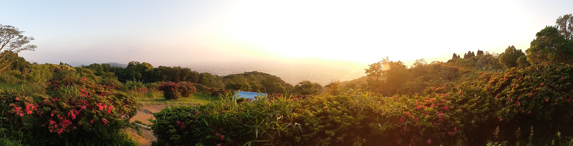 The view from here is completely worth the climb. I took the Kamitsudake (神津嶽) hiking course up. Starting at Hiraoka Jinja, it took about 3 hours to get to the top and I was able to catch the sunset. Besides the beautiful landscape, there are pink Azalea flower bushes leading up to the peak. The space is really open and gives you a whole view of Osaka, especially on non-foggy days. I went near the end of May/ start of June.
