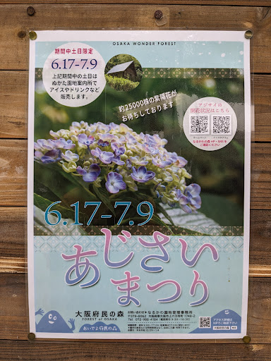 This is a very special place for viewing Ajisai (hydrangea) blooms in Japan. 25,000 hydrangeas are planted in an expansive area on the western slope of Mount Ikoma overlooking Osaka. Blooming peaks between mid June and mid July. Having visited many famous temples for hydrangea viewing, I can say that this forest offers a very different type of experience seeing the blooms in a more wild and natural context. We appreciated our visit and little hike amongst the blooms above Osaka very much, and are very grateful to the caretakers of this special place for their hard work maintaining its beauty. Note 1: Amenities are generally not available. We would recommend that you come well provisioned with drinking water and perhaps a nice snack--there are picnic tables at a good viewpoint along the road above the hydrangea forest. Be mindful to carry out all waste with you. Note 2: We hiked into the forest via the Ikomasanjo cable car station and Amusement Park. Follow the signs to the parking lot and follow the Chipmunk ride down a long staircase to the parking area. Google maps indication for the trail head is relatively accurate, however the trail is not visibly marked and you will need to step over the car barrier and through some tall grass. The trail is for the first 200+/- meters is steep, muddy, and not for the unprepared--the rest of the walk is a paved road or stairs. Wear appropriate shoes, clothing, and prepare yourself for a nice...