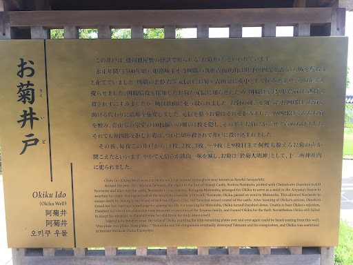 Read moreOkiku Ido is one of the most well-known wells that features in the ghost story called "Banshu Sarayashiki." It is said this was the well where the body of Okiku were thrown out and voice of Okiku to count...