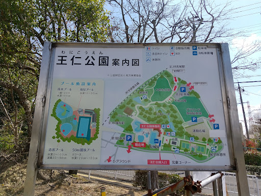 マップでもわかる通り、山田池公園よりは、小さいが山田池公園には、プールもグラウンドもコートもない。 (山田池公園は、王仁公園にはない広い芝生スペースがあり、駐車場管理人がいる。)
