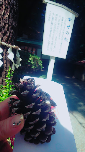 神様とお話ししたくて、おみくじを引きました。 巾着に入った可愛いおみくじです✨ その内容が泣けて泣けてありがたかったです。 トトロの森の募金もして(この木々に小さい頃から育まれていたので) その横にあった松ぼっくりをひとつ、大事にいただいてきました。