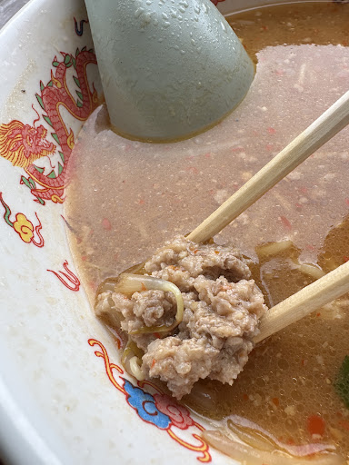チャーシューは入ってません。代わりにほぐす気のない豚挽き肉が塊で入ってます。コレが味を出すんですよね。