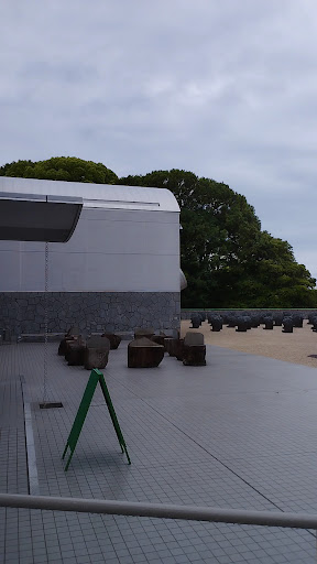 また美術館の周りの数々の彫刻作品も素晴らしく、特に、マグダレーナ・アバカノヴィッチさんの「ヒロシマ-鎮まりしものたち」という作品。カフェの前の小道を入っていくと、突如目の前に現れるのは、まるで生き物のような何かの群れ。妙な生命感。「すべて人の背中がかたどられている」という説明に、なにか納得しました。ここはヒロシマ。その空の下、それらはすべて同じ方向を向いている。灼熱のあの日の痛みが伝わってくるようであり、祈りの背中のようでもありました。